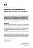 Acenta Group AB ("Acenta Group" or the "Company") has today signed a five-year exclusive supply agreement with InterPadel Holding AS ("InterPadel") for the Norwegian market. InterPadel operates 13 padel facilities in the Norwegian market and through the agreement, Acenta Group will be the exclusive supplier of padel equipment such as rackets, balls, clothing and other padel equipment to the facilities. Based on current sales and current forecasts, it is estimated that the agreement will generate revenues of at least NOK 30 million accumulated during the contract period. As part of the deal, Acenta Group is simultaneously acquiring inventory and customer data for a total of approximately NOK 1.9 million from InterPadel Shop AS.