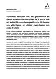 Detta pressmeddelande utgör inte ett erbjudande om eller inbjudan avseende att förvärva eller teckna värdepapper i USA. Värdepapperna som omnämns häri får inte säljas i USA utan registrering, eller utan tillämpning av ett undantag från registrering, enligt den vid var tid gällande U.S. Securities Act från 1933 ("Securities Act"), och får inte erbjudas eller säljas i USA utan att de registreras, omfattas av ett undantag från, eller i en transaktion som inte omfattas av registreringskraven enligt Securities Act. Det finns ingen avsikt att registrera några värdepapper som omnämns häri i USA eller att lämna ett offentligt erbjudande avseende sådana värdepapper i USA. Informationen i detta pressmeddelande får inte offentliggöras, publiceras, kopieras, reproduceras eller distribueras, direkt eller indirekt, helt eller delvis, i eller till Australien, Hongkong, Japan, Kanada, Nya Zeeland, Schweiz, Singapore, Sydafrika, USA eller någon annan jurisdiktion där sådant offentliggörande, publicering eller distribution av denna information skulle stå i strid med gällande regler eller där en sådan åtgärd är föremål för legala restriktioner eller skulle kräva ytterligare registrering eller andra åtgärder än vad som följer av svensk rätt. Åtgärder i strid med denna anvisning kan utgöra brott mot tillämplig värdepapperslagstiftning.