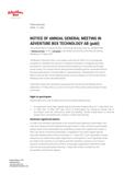 The shareholders of Adventure Box Technology AB (publ), Reg. No. 556963-6599 (“Adventure Box” or the “company”) are hereby summoned to the Annual General Meeting on 19 May 2022.