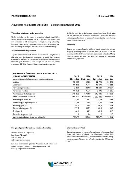 Aquaticus_Real_Estate_Pressrelease_2026-02-19.pdfAquaticus_Real_Estate_Bokslutskommunike_2025.pdf