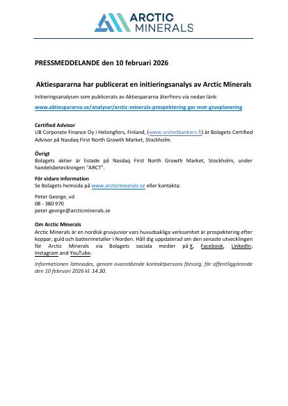 Se Bolagets hemsida på www.arcticminerals.se eller kontakta: