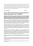 Arctic Minerals AB (publ) ("Arctic" eller "Bolaget") offentliggör härmed att de har genomfört en riktad nyemission av högst 25 000 000 aktier, motsvarande cirka 27,4 procent av kapitalet i Bolaget, till en begränsad grupp vidtalade investerare (den "Riktade Emissionen") mot kontant betalning. Teckningskursen i den Riktade Emissionen uppgick till 0,60 SEK per aktie. Den Riktade Emissionen beräknas tillföra Bolaget 15 MSEK före avdrag för emissionskostnader.
