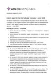 The Board of Directors of Arctic Minerals AB (publ) ("Arctic Minerals", the "Company" or the "Parent company" and together with its subsidiaries the "Group") (the "Board") hereby submits an interim report for the period January - June 2023.