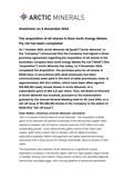 This is a transformational deal for Arctic Minerals. The Acquisition of REEM gives Arctic Minerals 100 percent ownership of the Hennes Bay copper-silver deposit in Sweden, with its historic mineral resource of 25 million tons and outstanding upside. Arctic Minerals also gains control of the Swan Lake copper-gold-silver project, also in Sweden, with its highly promising exploration potential. REEM's management are highly experienced mining executives with a track record of creating shareholder value in excess of US$ 1 billion.