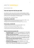 As previously announced, Tord Cederlund resigned as CEO of Arctic Minerals AB on October 31, 2018. Administration and post address was moved to Östersund. - 20 December Arctic Minerals AB announced that four new extraction permits had been granted by the Directorate of Mineral Management (DMF) at the company's Bidjovagge copper-gold project in Norway.