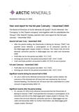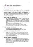 - After the period ending, the Directorate of Mining for Norway ("DMF") has granted Arctic Minerals a prolongation of its extraction permits at the Bidjovagge gold-copper project in Norway. This means that all Arctic Minerals' extraction permits in Bidjovagge now are valid until December 2028.
