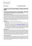 The shareholders of Bluelake Mineral AB (publ), company registration no 556493-3199 (the "Company"), are hereby invited to participate in the Annual General Meeting ("AGM") which is held on May 26, 2021 at 10 am at Brahegatan 29, 114 37 Stockholm, Sweden.