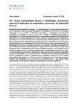 Bluelake Mineral AB (publ) (the "Company" or "Bluelake Mineral") has, as previously announced via the subsidiary Vilhelmina Mineral AB, applied for exploitation concessions for the deposits Stekenjokk K no. 1 located in Vilhelmina municipality in Västerbotten and Strömsund municipality in Jämtland, as well as Levi K no. 1 located in Vilhelmina municipality in Västerbotten. The County Administrative Board in Västerbotten requested in 2019 that a Natura 2000 permit for mining operations be in place before a final assessment of applied for exploitation concessions could take place. In November 2022, Vilhelmina Mineral received a final Natura 2000 permit. The Swedish Mining Inspectorate finally re-referred the case to the County Administrative Board in Västerbotten in the spring of 2024. The County Administrative Board in Västerbotten then chose to send the case and on a new referral to Vilhelmina municipality, the Sami Parliament and both of the affected Sami villages Voernese Sami village in Jämtland and Vilhelmina Södra in Västerbotten, which all have submitted responses. The Company has also provided a statement. The County Administrative Board in Västerbotten now announces that it is recommending that the Swedish Mining Inspectorate approves both applied for exploitation concessions Stekenjokk K no. 1 and Levi K no. 1. The other concerned County Administrative Board in Jämtland has already in 2019 approved a exploitation concession for the southern mineralization Stekenjokk K no. 1 which is located on both sides of the county border between Jämtland and Västerbotten. The case will now be transferred back to the Swedish Mining Inspectorate for a final decision regarding the exploitation concessions applied for.