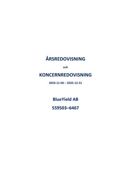 BlueYield AB ("BlueYield" or "the Company") hereby reports its annual report 2025. The full year reporting period is extended as the Company was formed on November 6, 2024, but dormant until its subsidiary BlueYield AS was acquired on June 17, 2025