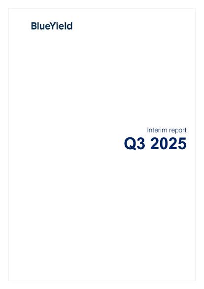BlueYield AB ("BlueYield" or "the Company") hereby reports its financial results for Q3 2025. The full year reporting period is extended as the Company was formed on 6 November 2024, but dormant until its subsidiary BlueYield AS was acquired on 17 June 2025