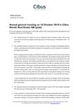 Annual general meeting on 18 October 2018 in Cibus Nordic Real Estate AB (publ)