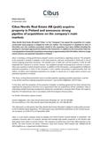 Cibus Nordic Real Estate AB (publ) acquires property in Finland and announces strong pipeline of acquisitions on the company's main markets