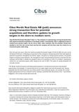 Cibus Nordic Real Estate AB (publ) announces strong transaction flow for potential acquisitions and therefore updates its growth targets in the short to medium term.