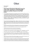 Cibus is a real estate company listed on Nasdaq First North Premier Growth Market in Stockholm. The company's business idea is to acquire, develop and manage high quality properties in the Nordics with daily goods store chains as anchor tenants. The company currently owns more than 270 properties in the Nordic. The main tenants are Kesko, Tokmanni, Coop and S-Group. FNCA Sweden AB, +46(0)8-528 00 399 [email protected], is appointed Certified Adviser.