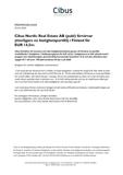 Cibus är ett fastighetsbolag noterat på Nasdaq First North Premier Growth Market i Stockholm. Företagets affärsidé är att förvärva, utveckla och hantera fastigheter av hög kvalitet i Norden med dagligvaruhuskedjor som ankarhyresgäster. Företaget äger för närvarande drygt 270 fastigheter i Norden. De viktigaste hyresgästerna är Kesko, Tokmanni, Coop och S-gruppen. FNCA Sweden AB, +46 (0) 8-528 00 399 [email protected], är utsedda till Certified Adviser.