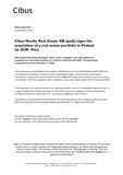 Cibus Nordic Real Estate AB (publ) signs the acquisition of a real estate portfolio in Finland for EUR 102m