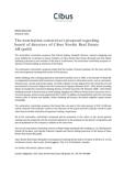 Cibus is a real estate company listed on Nasdaq First North Premier Growth Market in Stockholm. The company's business idea is to acquire, develop and manage high quality properties in the Nordics with daily goods store chains as anchor tenants. The company currently owns approximately 250 properties in Finland and Sweden. The main tenants are Kesko, Tokmanni, Coop and S-Group. FNCA Sweden AB, +46 (0) 8-528 00 399 [email protected], is appointed Certified Adviser.