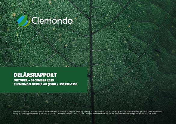 Torsdagen den 26 februari, klockan 07.30 CET, publiceras denna kvartalsrapport. Dagen efter kommer en inspelad presentation av kvartalsrapporten finnas tillgänglig på Youtube via DNB Carnegie Play på följande länk: https://www.youtube.com/@DNBCarnegiePlay/search?query=clemondo