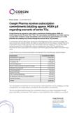 Coegin Pharma receives subscription commitments totalling approx. MSEK 9.8 regarding warrants of series TO3