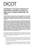 - The Board of Directors in Dicot therefore announces its intention to resolve on a Rights Issue amounting to approximately SEK 125 million before deductions for transaction costs. In addition, the Company can receive additional proceeds from the warrants issued as part of the Units.