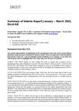 Press release: Uppsala, May 6, 2022. A summary of the Interim report January - March 2022, for Dicot AB (publ) is now available on the company website www.dicot.se