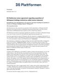 DS Plattformen has entered an agreement regarding the acquisition of all shares in Whitepearl through a new issue of shares of series B in DS Plattformen against payment through set-off. In connection with completion of the Transaction, DS Plattformen shall in all material respects be a shell company except for liquid assets covering its debts.