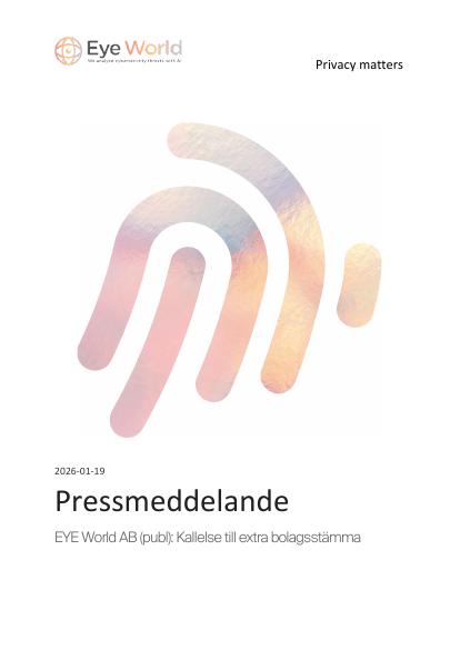 Aktieägarna i Eye World AB (publ), org.nr 559005-9415 ("Bolaget"), kallas härmed till extra bolagsstämma den 19 februari 2026 kl. 10.00 i Eversheds Sutherland Advokatbyrås lokaler på Sveavägen 20, Stockholm. Inregistrering börjar kl. 09.45.