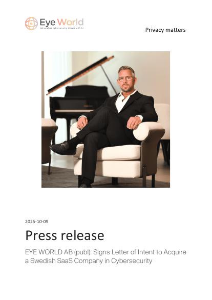 EYE WORLD AB (publ): Signs Letter of Intent to Acquire a Swedish SaaS Company in Cybersecurity