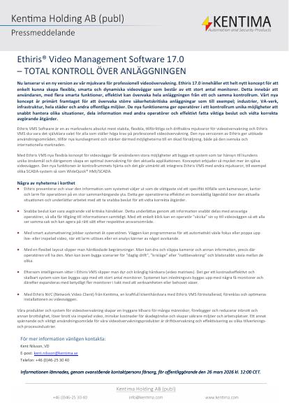 - Med Ethiris NVC (Network Video Client) från Kentima, en kraftfull klienthårdvara med Ethiris VMS förinstallerad, förenklas och optimeras installationen av videoväggen.