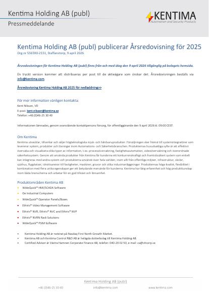 Årsredovisningen för Kentima Holding AB (publ) finns från och med idag den 9 april 2026 tillgänglig på bolagets hemsida.