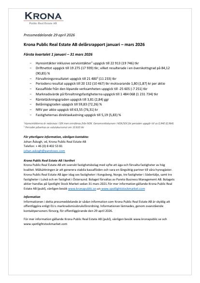 Krona_Public_Real_Estate_Pressrelease_2026-04-29.pdfKrona_Public_Real_Estate_Delarsrapport_Q1_2026.pdf