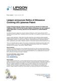 Lipigon Pharmaceuticals (Lipigon) today announces that the US Patent and Trademark Office (USPTO) has issued a Notice of Allowance for the Company's patent application covering Lipisense for the treatment of cardiometabolic disease.