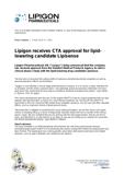 Lipigon receives CTA approval for lipid-lowering candidate Lipisense