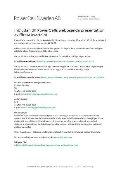Länk till telefonkonferensen: https://events.inderes.com/powercell-group/q1-report-2026/dial-in
