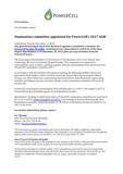 Shareholders wishing to submit proposals to PowerCell's nomination committee are welcome to do so via e-mail to: [email protected] or by writing to: PowerCell Sweden AB, Attn: Nomination Committee, Ruskvädersgatan 12, SE-418 34 Gothenburg, Sweden, by February 15, 2017 at the latest.