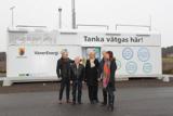 (IMG_5520) Outside the hydrogen station in Mariestad: Pontus Lundgren, CEO of Nilsson Energy AB, Hans-Olof Nilsson, founder of Nilsson Energy, Martina Wettin, co-owner Nilsson Energy AB, Rolf Åkesson, CEO VänerEnergi and Ulrika Lindahl, Project Manager at Test and demonstration site Mariestad
