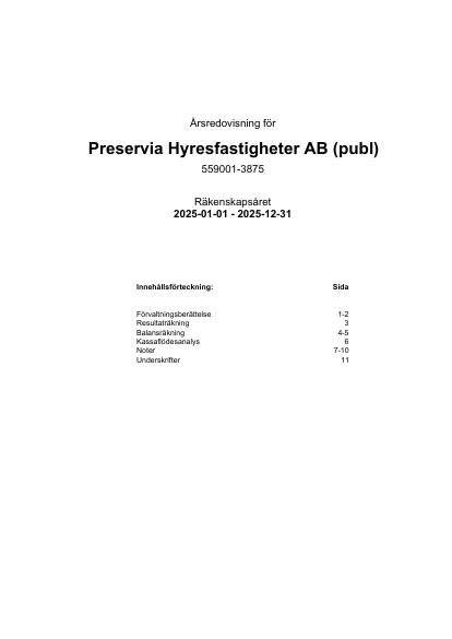 Härmed offentliggör Preservia Hyresfastigheter AB (publ) årsredovisningen för perioden januari 2025 - december 2025.