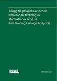 Real Holding i Sverige AB (publ) ("Real Holding" eller "Bolaget") offentliggör idag ett tillägg till prospekt avseende det prospekt avseende erbjudandet att teckna stamaktier av serie B i Bolaget som offentliggjordes den 27 januari 2016. Tilläggsprospektet upprätts i anledning av att resultatprognosen har uppdaterats, där posten "Resultatförda förutbetalda kostnader" tillkommit med anledning av justerad tillämpning av redovisningsprinciper samt utökad information kring riskfaktorer.