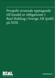 Real Holding offentliggör noteringsprospekt för bolagets obligationer inför upptagande till handel på NDX Real Holding i Sverige AB (publ) ("Real Holding" eller "Bolaget") offentliggör idag ett noteringsprospekt för de 65 000 obligationerna med ett nominellt belopp om 65 MSEK ("Obligationerna") som tidigare har emitterats upp i Bolaget för upptagande till handel på NDX.
