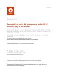 Tempest Security AB (publ.) kommer att hålla en kapitalmarknadspresentation på ABG Sundal Collier Investor day den 4 december klockan 16:00. Presentationen hålls av Tempest Securitys grundare och tf. koncernchef Andrew Spry.