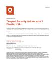 Tempest Security AB (publ) amerikanska dotterbolag Tempest Security Inc. har tecknat ett avtal om leverans av säkerhetstjänster. Avtalet beräknas ha ett värde om c:a 9 miljoner svenska kronor per år. Avtalet bedöms ha god lönsamhet.