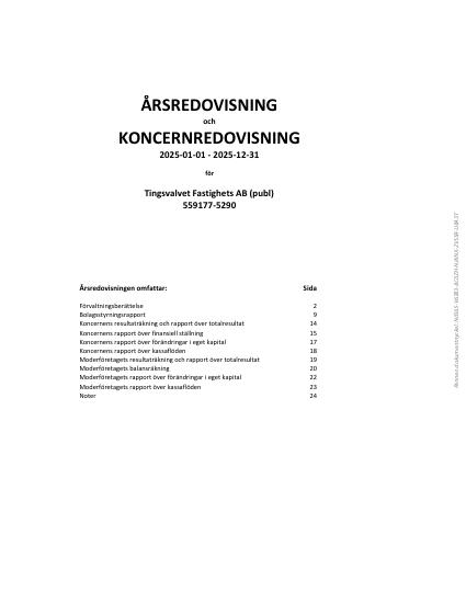 Tingsvalvet Fastighets AB (publ) publicerar Årsredovisning för 2025