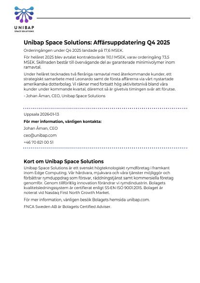 Unibap Space Solutions: Affärsuppdatering Q4 2025