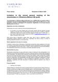 The shareholders in Vilhelmina Mineral AB (publ), reg. no 556832-3876, are hereby invited to participate in the Annual General Meeting to be held on Friday, April 24, 2020 at 4 p.m. in the Company's premises at Brahegatan 29 in Stockholm. Registration to the Annual General Meeting starts at 3.30 p.m.