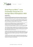 Xavi Solutions dotterbolag Frontwalker Group har blivit utsett av Great Place to Work® till en av Sveriges Bästa Arbetsplatser 2023 och rankas som nummer 14 inom medelstora organisationer.