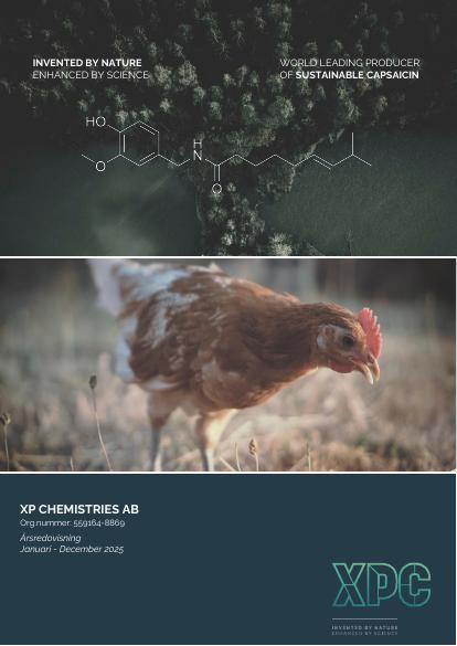 XP Chemistries är ett svenskt bioteknikbolag med patenterade teknologier för att framställa kapsaicin från hållbara skogsråvaror, något som traditionellt har skett från chilifrukter. Bolagets teknologi medför en rad fördelar, bland annat att processen är hållbar, kapsaicinet får en mycket högre renhet, processen är kostnadseffektiv och enkel att skala upp. Kapsaicin är ett fettlösligt, färg- och doftlöst, vaxartat ämne och är orsaken till den upplevda hettan i växtarter tillhörande släktet chilipeppar. Kapsaicin används i dag i flertalet produkter, bland annat i djurfoder, skadedjursbekämpning, kosmetika och medicinska produkter. Bolagets verksamhet är inriktad på att utveckla produkter baserade på kapsaicin som är producerat med Bolagets patenterade process och är i linje med FN:s globala mål för hållbar utveckling. Bolaget är idag uppdelat i fyra marknadsområden som alla kommer producera och marknadsföra produkter innehållande kapsaicin. De fyra marknadsområdena heter Feed, Cosmetics, Life och Protect. Bolagets verksamhet bidrar till hållbar produktion och konsumtion genom att bland annat motverka överanvändning av antibiotika. Mer info på https://www.xpchemistries.com/